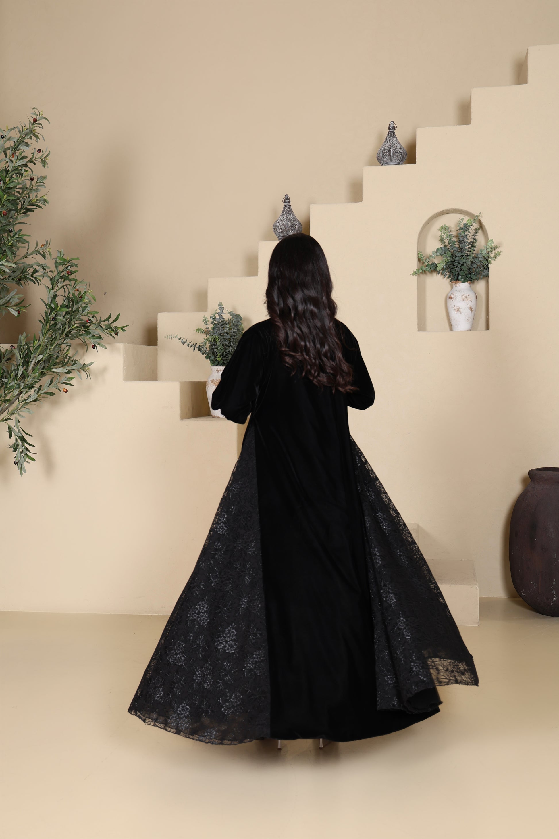 عباية مخمل اسود مع دانتيل فرنسي